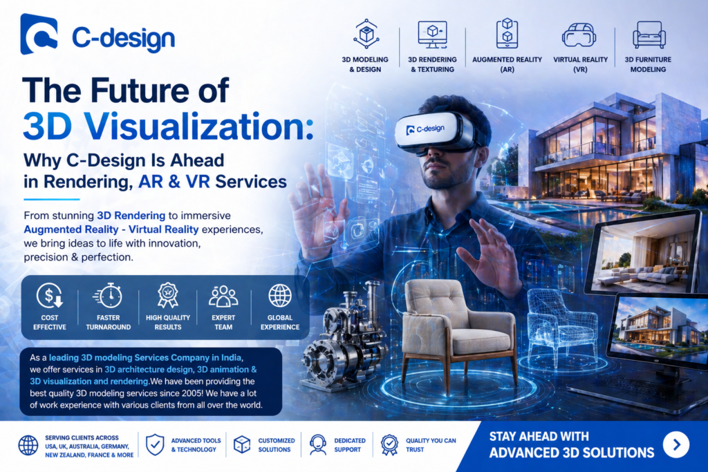 Among the leading names in this space stands C-Design Pvt Ltd, a trusted and experienced provider of Outsource 3D Modeling Services under the brand Outsource3DModeling.com. With 20+ years of industry expertise, a team of 400+ engineers and designers, and a strong global presence across the US, UK, UAE, Europe, and the Middle East, C-Design has built a reputation as a reliable partner for 3D Architecture, 3D Product Design, and Augmented Reality - Virtual Reality solutions.